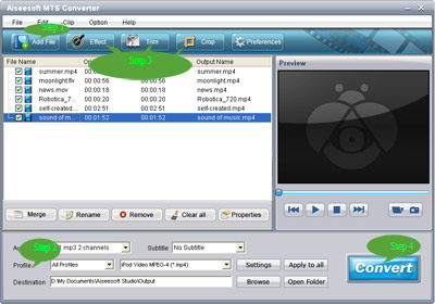 When you convert MTS to AVI, it allows you to do many video editing such as making special Effect for your movie, Trim any length segments, Crop playing area and more.